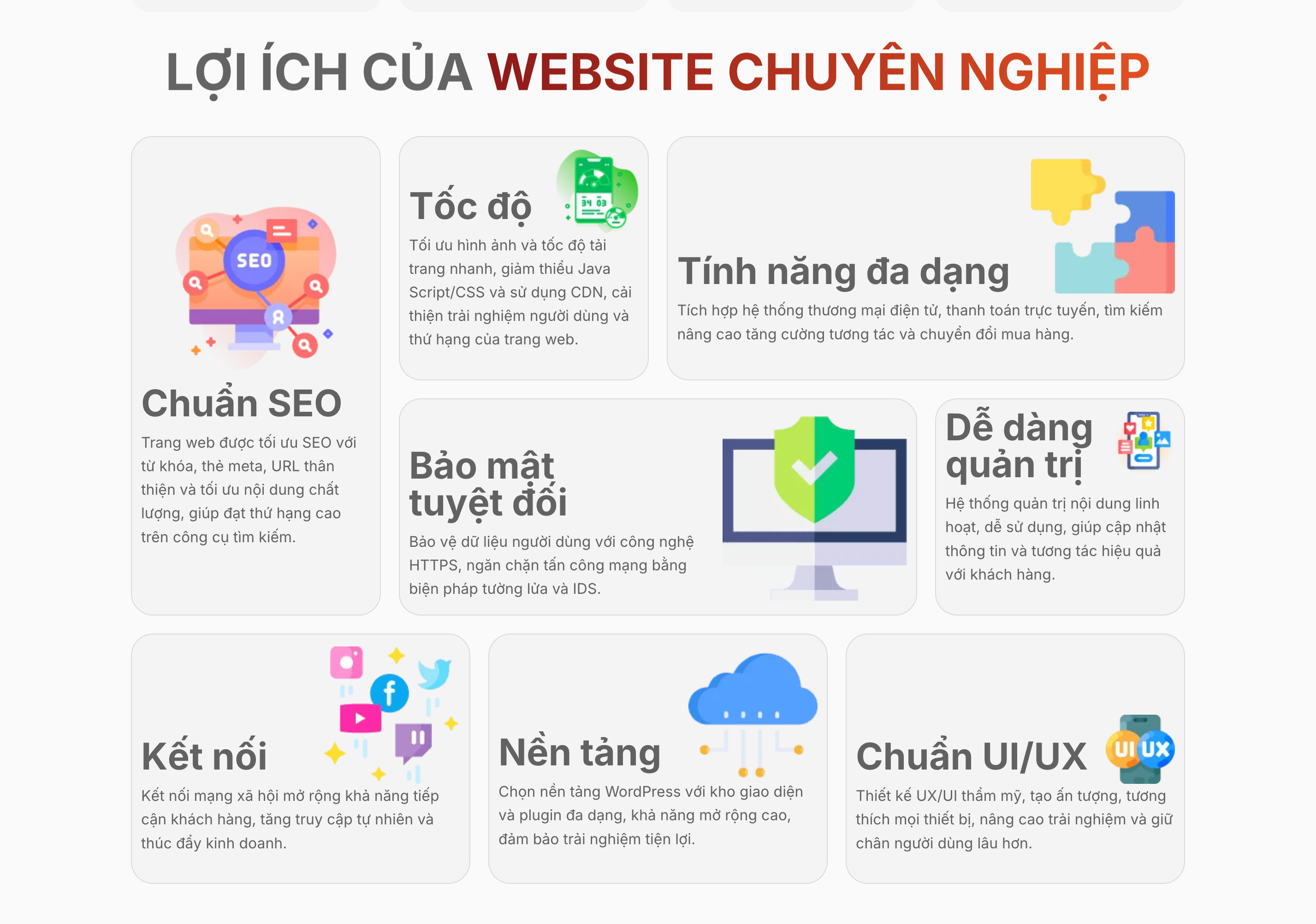 Tăng độ uy tín thương hiệu: Website là bộ mặt online của doanh nghiệp, giúp tạo dựng sự tin tưởng cho khách hàng.